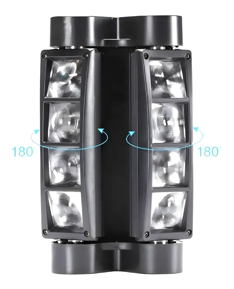 8 Leds de 3w. c/u. (2 rojos, 2 verdes, 2 azules, 2 blancos).